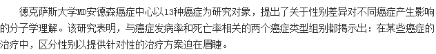 思路:近日,最新癌癥預(yù)防趨勢(shì)出爐,在所有的權(quán)威理論中,其中有一條引起廣發(fā)關(guān)注“未來(lái)癌癥的治療可能要按照性別區(qū)分對(duì)待”原文如下: