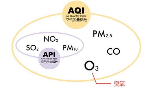 目前,我國已加大對臭氧污染的監測與治理。我國以前衡量空氣質量用的是API(Air Pollution Index:空氣污染指數),只衡量SO2、NO2