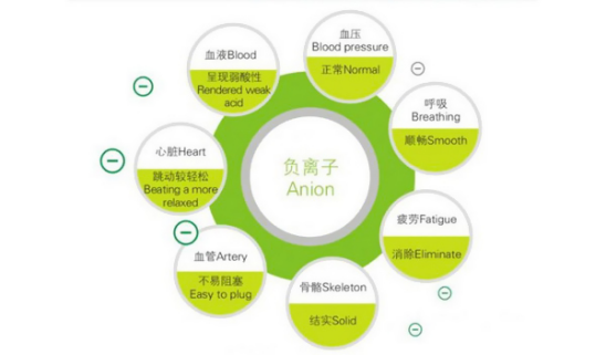 中國空氣負離子暨臭氧研究學會首席專家陶名章教授表示,空氣負離子是對人體健康非常有益的一種物質。當人們通過呼吸將負氧離子送進肺泡,能夠刺激神經系統產生良好效應,經血液循環后把所帶的電荷送到全身組織細胞中,從而調節人體內在的生物節律,抑制老化,使血液、體液的PH值呈弱堿性,促進體內廢物、毒素的排出;改善脂質、糖代謝;活化NK細胞,抑制有害菌、病原菌的增殖,防止感染;增強心肌營養和細胞代謝,減輕疲勞,提高免疫能力,促進健康長壽。這也是負氧離子為什么會有“空氣維生素”和“長壽素”等美稱的原因。