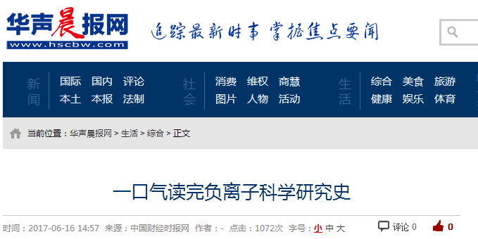 15.2011年4月,我國第一個負離子(負氧離子)行業(yè)網(wǎng)站——中國空氣負離子(負氧離子)暨臭氧研究學會官網(wǎng)正式開通運行。該網(wǎng)站的運行推進了我國空氣負離子(負氧離子)產(chǎn)業(yè)的健康有序快速發(fā)展,一定程度上消除了概念型負離子(負氧離子)產(chǎn)品及不合格假冒偽劣產(chǎn)品的過度炒作造成的市場疑問,規(guī)范了市場秩序,為有著“空氣維生素”“空氣維他命”“長壽素”之美譽的負離子(負氧離子)進行了正名。
