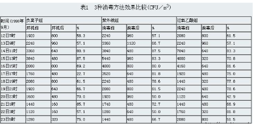 從以上3種消毒方法的監(jiān)測實(shí)驗(yàn)結(jié)果表明:空氣中細(xì)菌密度明顯下降,負(fù)離子發(fā)生器為70.4%,紫外線為69.6%,3%過氧乙酸70.2%。