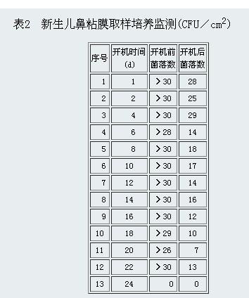 其中,負(fù)氧離子對(duì)人體具有保健作用,特別是對(duì)呼吸系統(tǒng)的作用尤為顯著,為此在放有負(fù)離子發(fā)生器的房間,進(jìn)一步對(duì)新生兒外呼吸道菌落取樣培養(yǎng)監(jiān)測。具體方法是:首先用無菌棉簽擦拭新生兒外鼻孔,10分鐘后用無菌生理鹽水棉簽在新生兒鼻腔粘膜表面取樣。開機(jī)2~4小時(shí)后用開機(jī)前方法采取樣板,調(diào)查13人次。