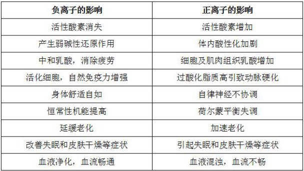 由此可見,負離子含量的高低與人體健康的關系是相當密切的。