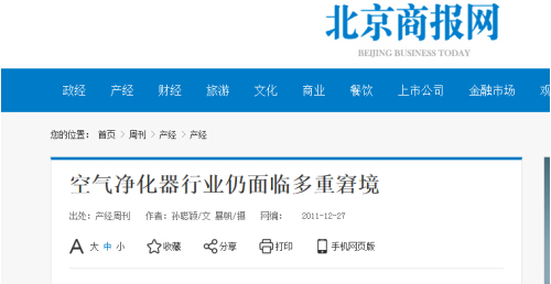北京商報《空氣凈化器行業仍面臨多重窘境》一文中就曾提到過:濾網式的空氣凈化器靠過濾網阻擋住空氣中的微塵或顆粒,這種模式有一個致命的弱點,就是難以阻擋0.3微米以上的顆粒物。而如果我們把過濾層設置的越多、濾孔越密集,則擋住的顆粒物就越微小,但隨之帶來的是空氣通過難度大,必須提高風機功率抽風,而風機功率的增大導致噪音的增大,同時提高過濾網層數無疑也增加凈化器體積,而且增加了為避免二次污染更換濾網難度。凈化效果與噪音目前仍然是風機加濾網式空凈難以解決的難題。