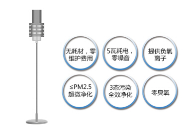 與傳統風機加濾網式空氣凈化器相比,負離子空氣凈化器不依賴風機及濾網,完全以負離子來凈化空氣,通過向空氣中釋放生態級的小粒徑負離子來達到凈化空氣的目的。據聯合過眾多的空氣環保領域的專家研究證實,小粒徑負離子可以主動出擊與小粒微塵相結合,使其凝聚而沉淀,有效除去空氣中2.5微米(PM2.5)及以下的微塵,甚至小至0.011微米的微粒。除此之外,在凈化甲醛、甲苯等裝修污染方面,負離子還有很好的作用,負離子可以將甲醛甲苯等有害氣體降解為二氧化碳和水等環境友好型物質,沒有任何的二次污染殘留。