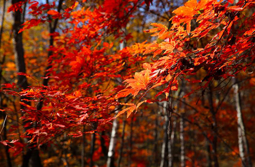 金黃的黃葉林、碧綠的松林、耀眼的白樺林,搭配著瓦藍的天,成全了紅葉谷中完美的五彩秋色。除迷人的紅葉以外,谷中怪石嶙峋,飛瀑跌落,經證實,負離子含量是都市區的幾百倍,《中國國家地理》雜志都曾把這里評為“中國十大秋色”之一。