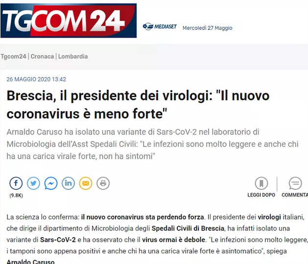 近日,意大利科學家就發布了一個“重磅消息”——研究顯示,新冠病毒的毒性正在減弱,越來越多的新感染者趨向于輕癥或無癥狀!過去幾個月,分離出來的病毒能在2至3天內攻擊所有細胞,而最近分離出來的病毒需要至少6天的時間。