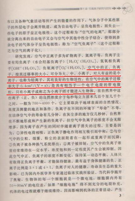 小粒徑負(fù)離子也叫輕離子或小離子,是一種等同于大自然的空氣負(fù)離子,也有資料稱其為生態(tài)級負(fù)離子。具有遷移距離遠(yuǎn)、活性高的特點(diǎn)。 清華大學(xué)博導(dǎo)、中科院專家林金明教授主編的《環(huán)境健康與負(fù)氧離子》一書中如下定義:空氣離子大小不一,按微粒直徑大小的不同可分為小離子(0.001-0.003µm)、中離子(0.003-0.03µm)、大離子(0.03-0.1µm)3類;(1納米=0.000000001米 1納米=0.0000001厘米 1納米=0.001微米)其在單位強(qiáng)度(V/m)電場作用下的移動(dòng)速度稱之為離子遷移率,它是分辨被測離子直徑大小的一個(gè)重要參數(shù)。空氣離子直徑越小,其遷移速度就越快,離子遷移率是表達(dá)被測離子大小的重要參數(shù)。離子運(yùn)動(dòng)速度與離子直徑成反比,而離子遷移率與離子運(yùn)動(dòng)速度成正比,故離子遷移率與離子直徑成反比。 醫(yī)學(xué)研究表明:對人體有醫(yī)療保健作用的是小粒徑負(fù)離子。因?yàn)橹挥行×降呢?fù)離子才易于透過人體的血腦屏障,發(fā)揮其生物效應(yīng)。大自然中的空氣負(fù)離子之所以造就眾多長壽村,是因?yàn)樾×降呢?fù)離子比例高,小粒徑的負(fù)離子由于活性高、遷移距離遠(yuǎn)從而在長壽地區(qū)上空形成負(fù)離子浴環(huán)境。 以下是《環(huán)境健康與負(fù)氧離子》一書中對小粒徑負(fù)離子(小離子)的部分研究介紹:  《環(huán)境健康與負(fù)氧離子》